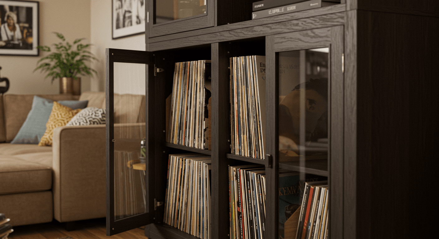 To prevent warping, store your records vertically and upright on a shelf or in a cabinet.⎠A good storage solution is essential for protecting your collection and keeping it easily accessible.â”